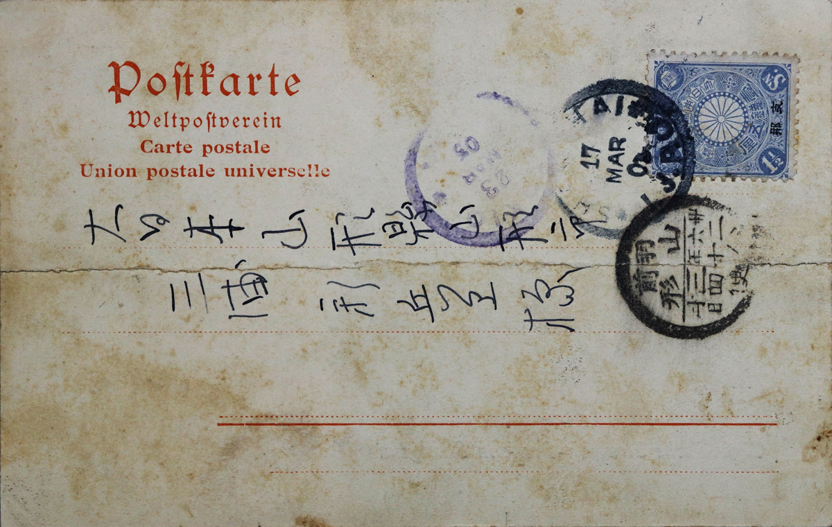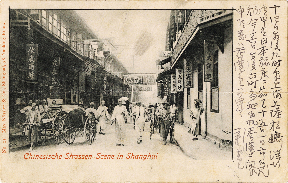 - 内容:「十四日午後九時半、上海上陸。松崎洋行と申す日本旅店に宿り、十五日一日市内見物。今十六日午後六時当地出帆、香港に向ひ申候。万々香港より可申上候。新七より」 /絵種別:写真/絵分類:風景/絵国名:中国/絵内容:上海|Shanfhai/絵作者・発行社:Max Nössler & Co./絵柄の種類:風景(その他)/留学期間:ライプチヒ大学時代/三浦と葉書の関係:三浦差出