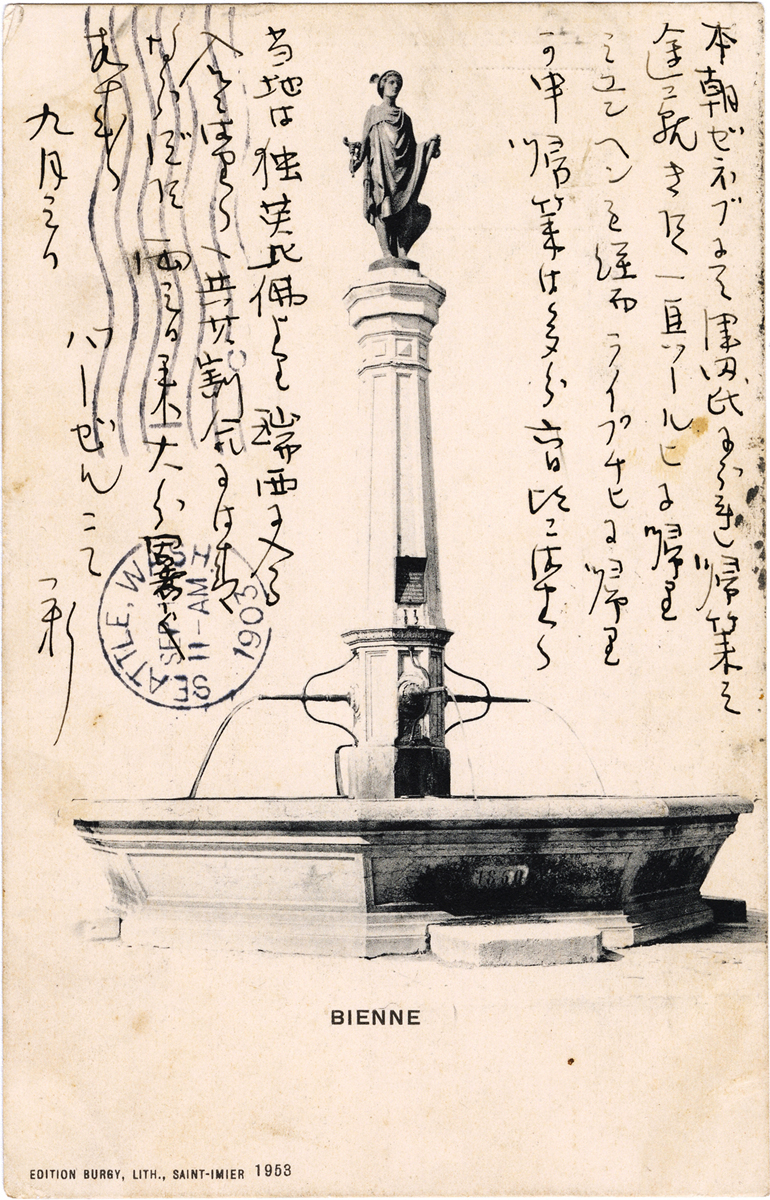 - 内容:今朝ジュネーブで津田氏と分かれ、ライプチッヒに戻る途に就いた。一旦、チューリッヒに帰り、ミュンヘンを経由してライプチッヒに帰る。多分6日頃になる。/絵種別:写真/絵分類:風景/絵国名:スイス/絵内容:銅像|ビール|ビエンヌ/絵作者・発行社:LITH,SAINT-IMIER/絵柄の種類:風景(その他)/留学期間:ライプチヒ大学時代/三浦と葉書の関係:三浦差出