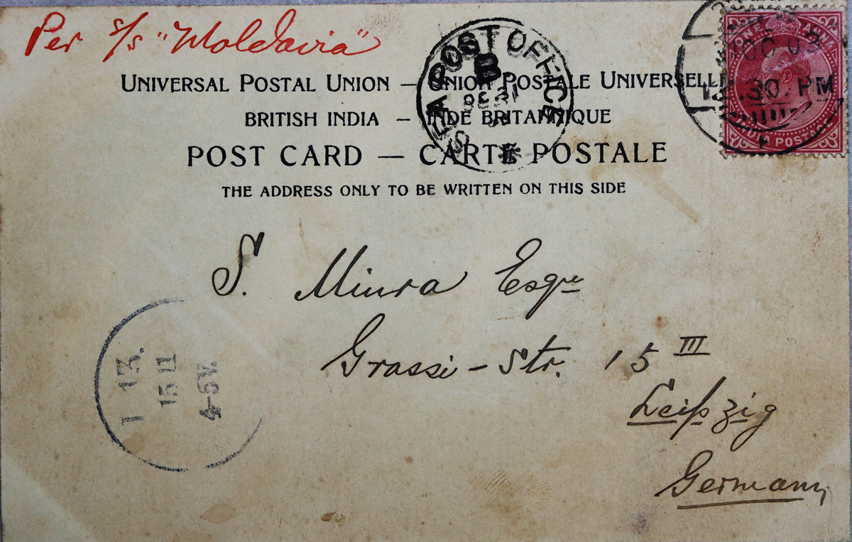 - 内容:依頼していた書物拝受の連絡。安兼兄へよろしく。/絵種別:写真/絵分類:風景/絵国名:インド/絵内容:ダージリン|雪山|山脈|カチェンジエンガ/絵作者・発行社:Clifton&Co./絵柄の種類:風景(その他)/留学期間:ライプチヒ大学時代/三浦と葉書の関係:三浦宛
