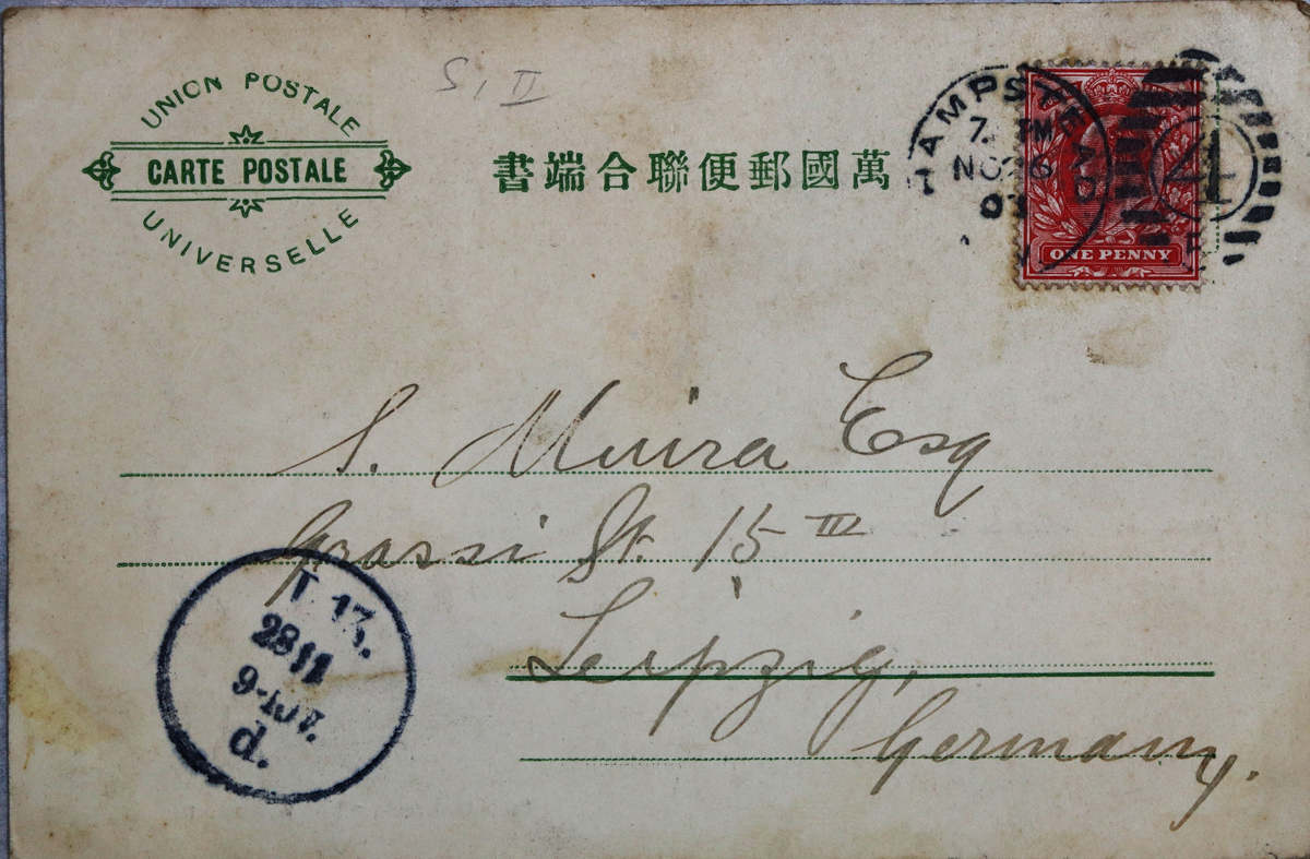 - 内容:雑誌『太陽』送付に対する御礼。近日中金は返すが、2月か3月にはまた面倒をみてくれ。/絵種別:写真/絵分類:風景/絵国名:日本/絵内容:組写真|スエズ運河|日本郵船|阿波丸/絵柄の種類:風景(日本)/留学期間:ライプチヒ大学時代/三浦と葉書の関係:三浦宛
