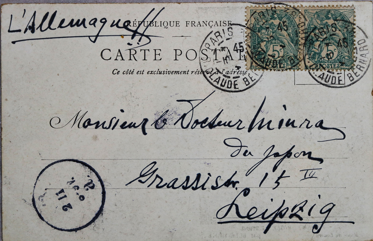 - 内容:パリには半年くらい滞留したいが、そうもいかない。来る6~7日頃にはドイツに入りたい。昨夜ファウストのオペラをみた。/絵種別:写真/絵分類:文化/絵国名:フランス/絵内容:絵画|《自画像》/絵作者・発行社:エリザベート=ルイーズ・ヴィジェ=ルブラン|Marie Élisabeth-Louise Vigée Le Brun|ルーブル美術館|Musee du Louvre/絵柄の種類:文化/留学期間:ライプチヒ大学時代/三浦と葉書の関係:三浦宛