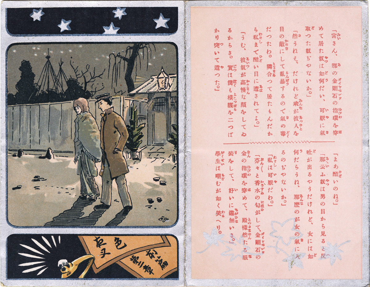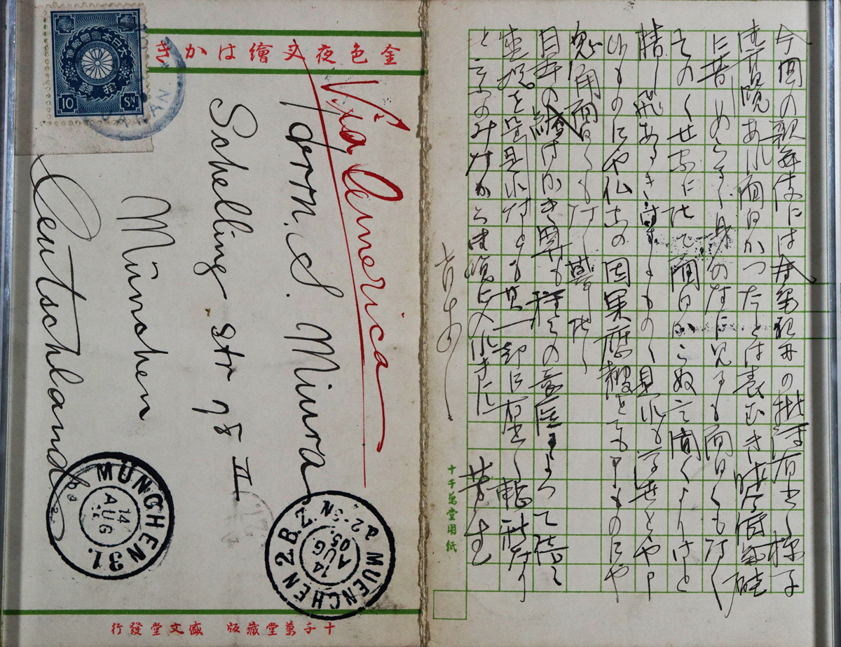 - 内容:「金色夜叉」観劇の感想/絵種別:絵/絵分類:文化/絵国名:日本/絵内容:金色夜叉|貫一|お宮|本文|デザイン/絵柄の種類:文化/留学期間:ミュンヘン大学時代/三浦と葉書の関係:三浦宛