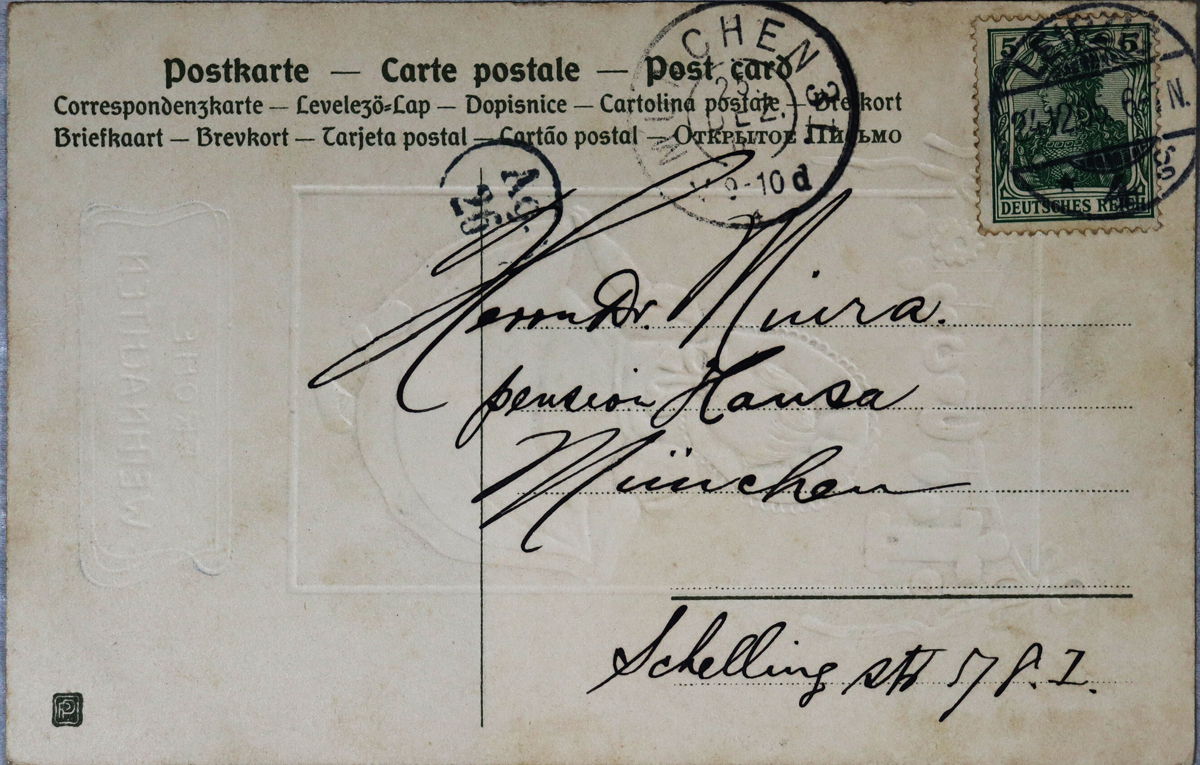 - 宛先:ペンションハンザ・シェリンク・シュトラッセ78・ミュンヘン