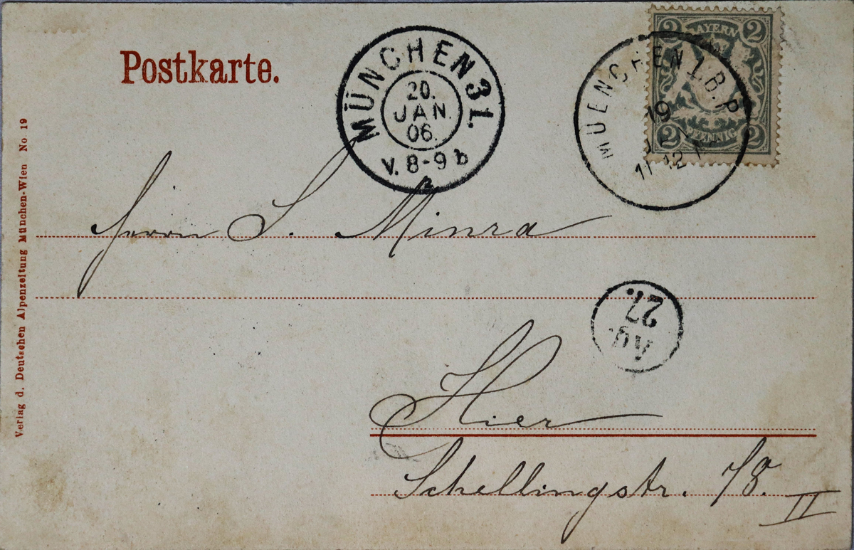 宛先:ミュンヘン・シェリング・シュトラッセ78・ペンション・ハウザ