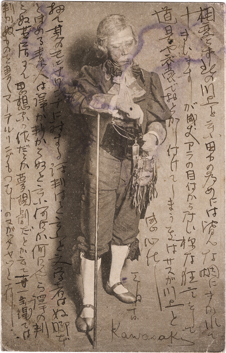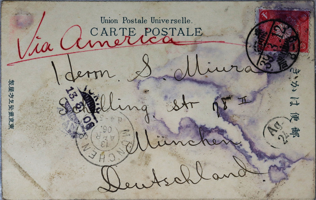 - 内容:近況報告。川上音二郎の舞台評。/絵種別:写真/絵分類:文化/絵国名:日本/絵内容:演劇|役者|老貴族/絵柄の種類:文化/留学期間:ミュンヘン大学時代/三浦と葉書の関係:三浦宛
