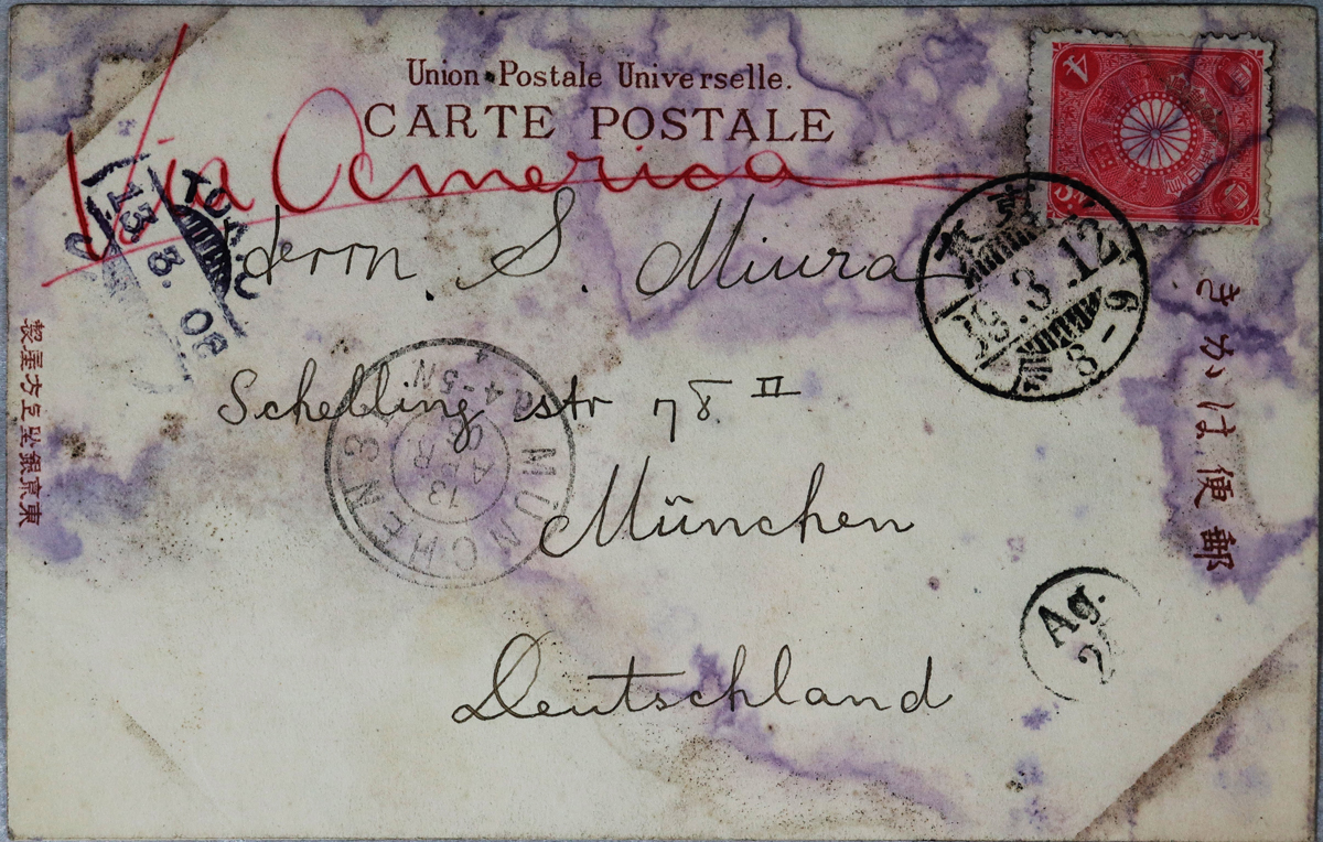 - 内容:文章未記載。/絵種別:写真/絵分類:風景/絵国名:日本/絵内容:東京|大名行列|仮装行列|コンノート殿下歓迎会/絵柄の種類:風景(日本)/留学期間:ミュンヘン大学時代/三浦と葉書の関係:三浦宛