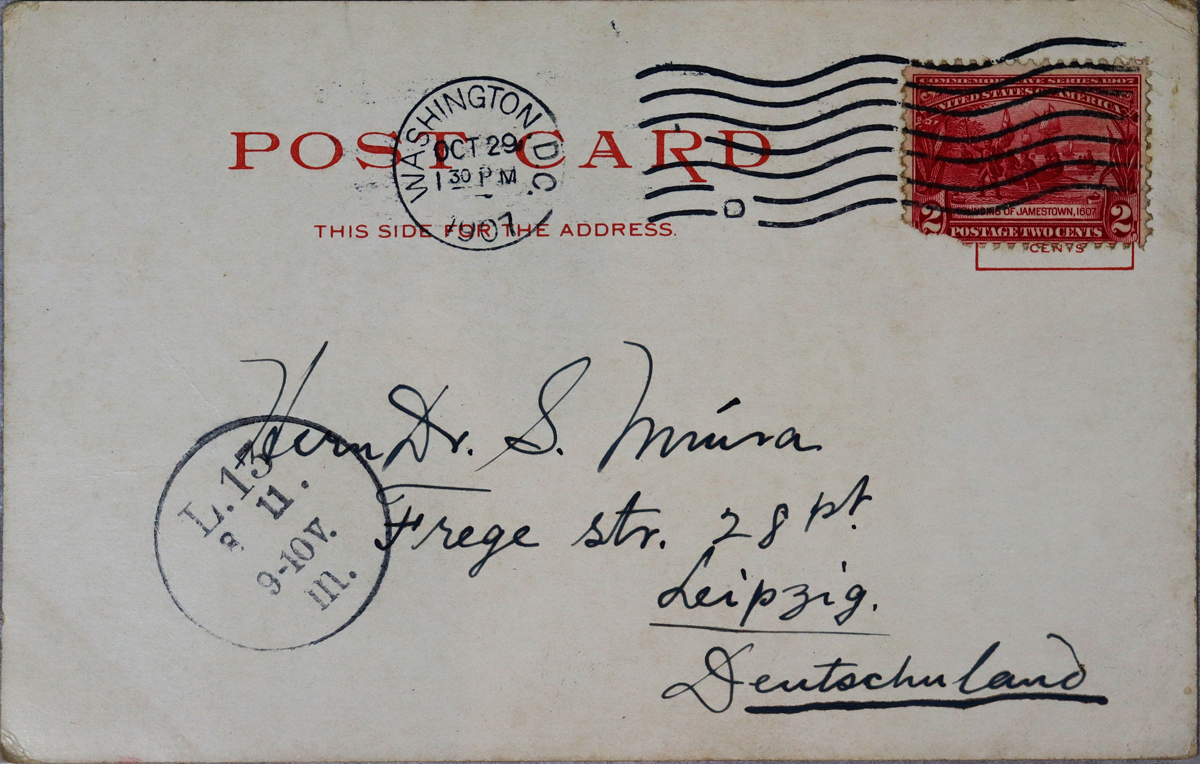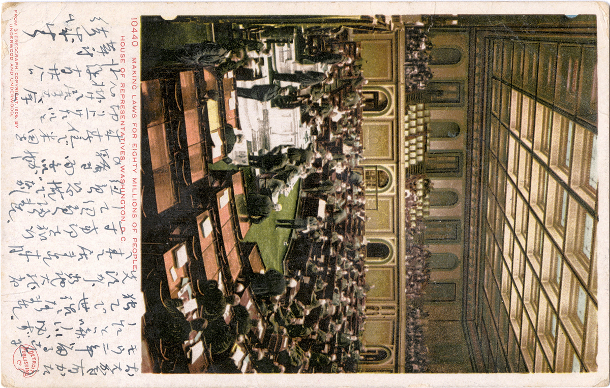 - 内容:葉書拝受。新七の留学2年延長喜び、必ずドイツでお世話になる。米国は来春で切り上げたい。/絵種別:写真/絵分類:風景/絵国名:アメリカ/絵内容:ワシントン|下院議会/絵作者・発行社:Detroit Publisiiing/絵柄の種類:風景(その他)/留学期間:再びライプチヒ大学時代/三浦と葉書の関係:三浦宛