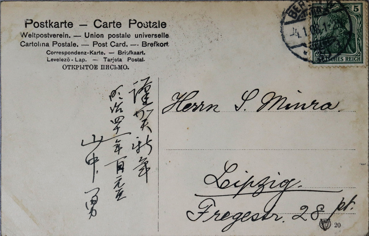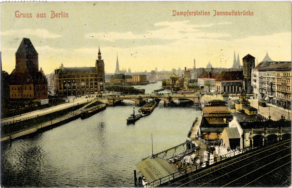 内容:年賀状。/絵種別:写真/絵分類:風景/絵国名:ドイツ/絵内容:ベルリン|橋|Jannowitzbrücke|波止場/絵柄の種類:風景(ドイツ)/留学期間:再びライプチヒ大学時代/三浦と葉書の関係:三浦宛