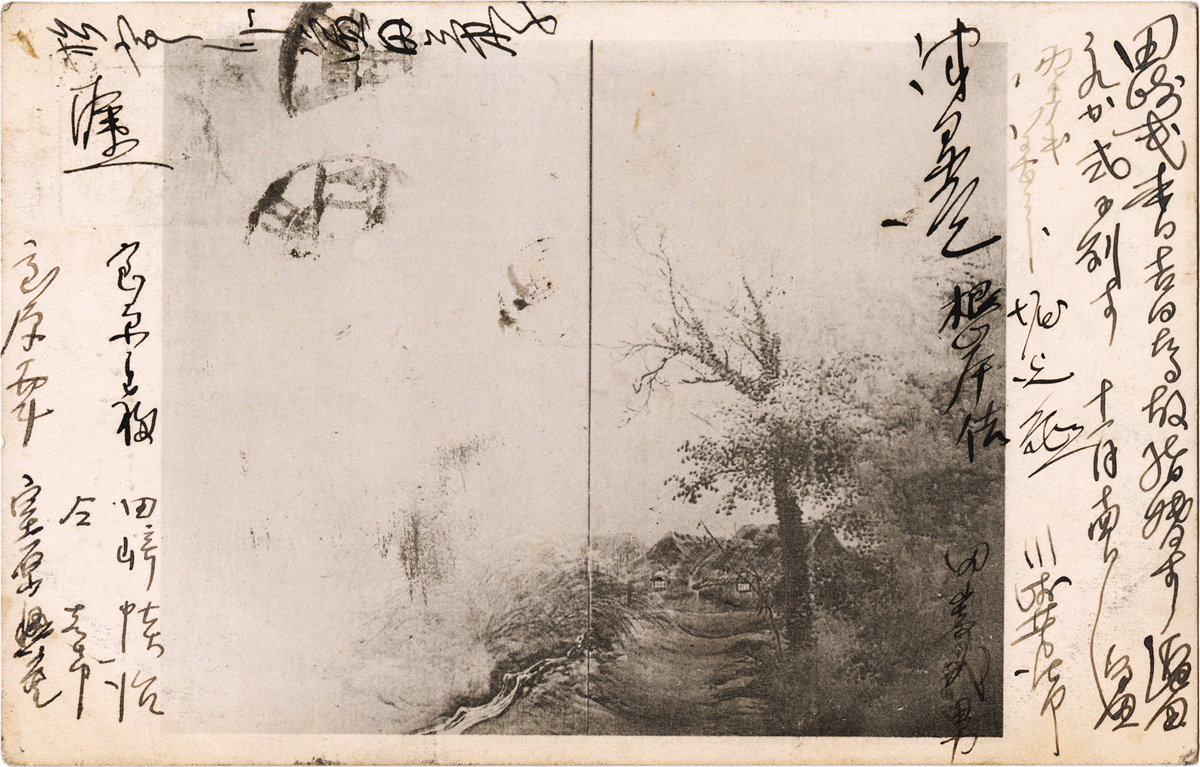 内容:田崎氏が本日吉日であるので結婚す。/絵種別:写真/絵分類:文化/絵国名:日本/絵内容:絵画|農村|冬|二曲屏風/絵柄の種類:文化/留学期間:再びライプチヒ大学時代/三浦と葉書の関係:三浦宛