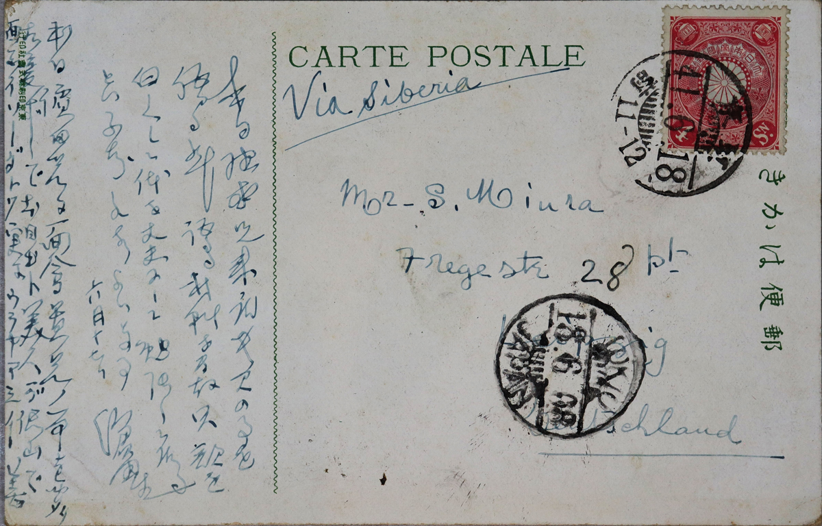 - 内容:野本氏に貴兄のことを語った(濱田)。/絵種別:写真/絵分類:風景/絵国名:日本/絵内容:絵画|「文化年中の三井呉服店」|デザイン|女性|江戸時代|原画「浮絵浮絵駿河町呉服屋図」/絵作者・発行社:三越呉服店/絵柄の種類:風景(日本)/留学期間:再びライプチヒ大学時代/三浦と葉書の関係:三浦宛
