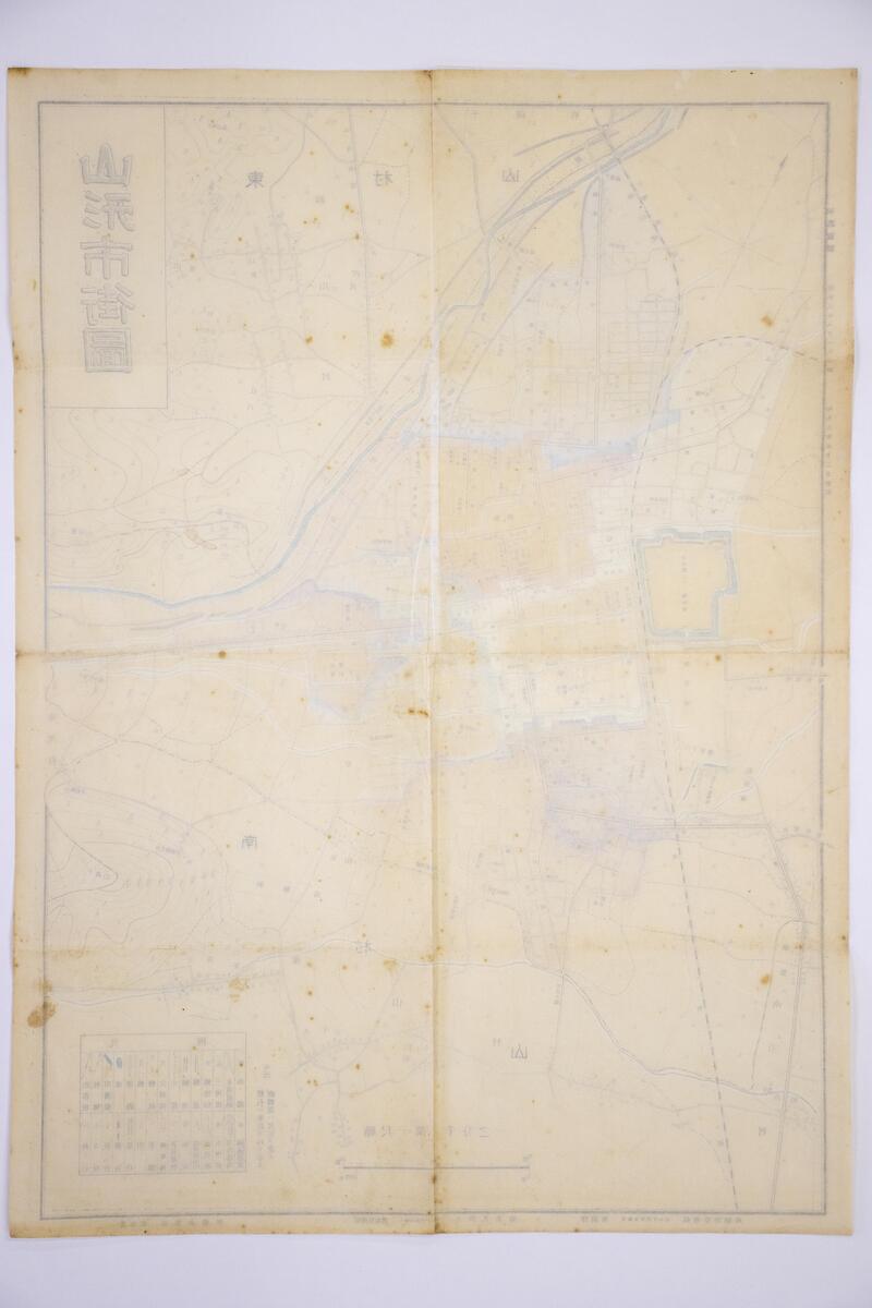 | 備考 | 縮尺1万2000分の1の山形市街の地図。市郡境・村境・川溝渠・池・道路・橋・樹林・火葬場・小径・国道・県道・郵便局・三角標・未成道路・市場・神社・寺院・教会・鉄道・堤防・田・桑畑・停車場・著名建物・病院・巡査派出所・高低線・水準標・郊外部落・陶磁器窯を図示している。手書きの彩色は学区を示している。 |