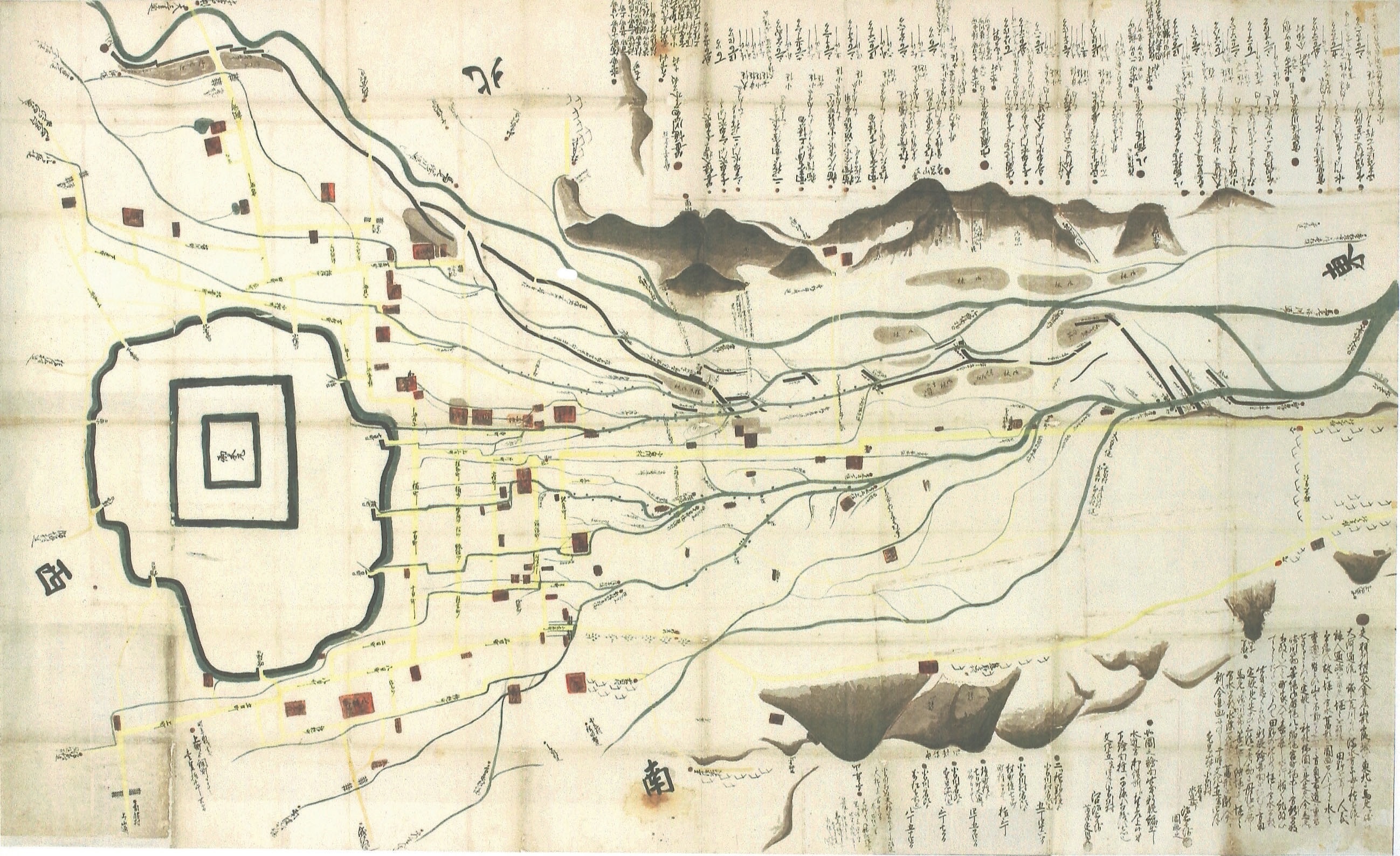 1818年(文化15)に小白川村の名主である江口治郎兵衛が作成した「山形五堰」の絵図。小白川財産区が所有するもので、データを山形市農村整備課が所有している。