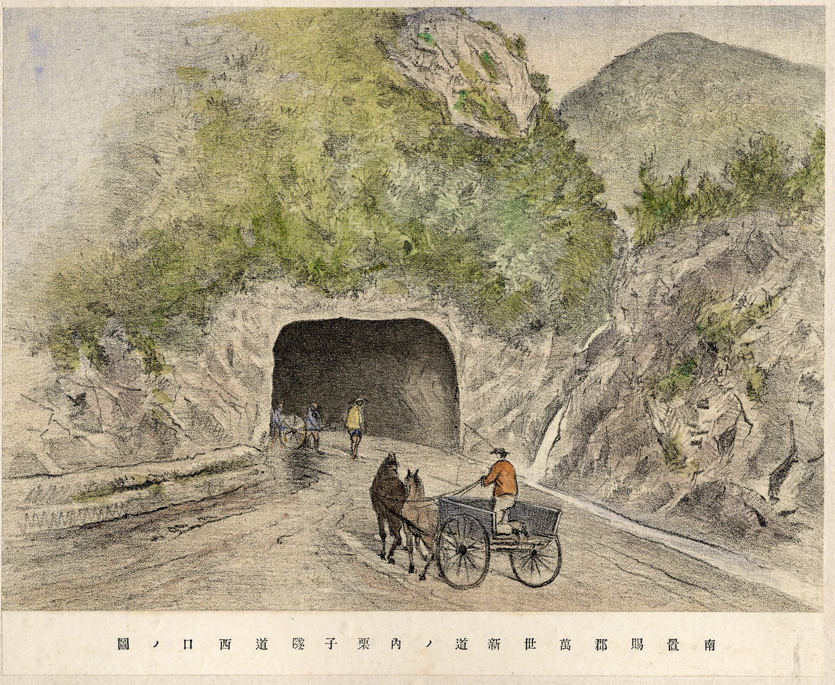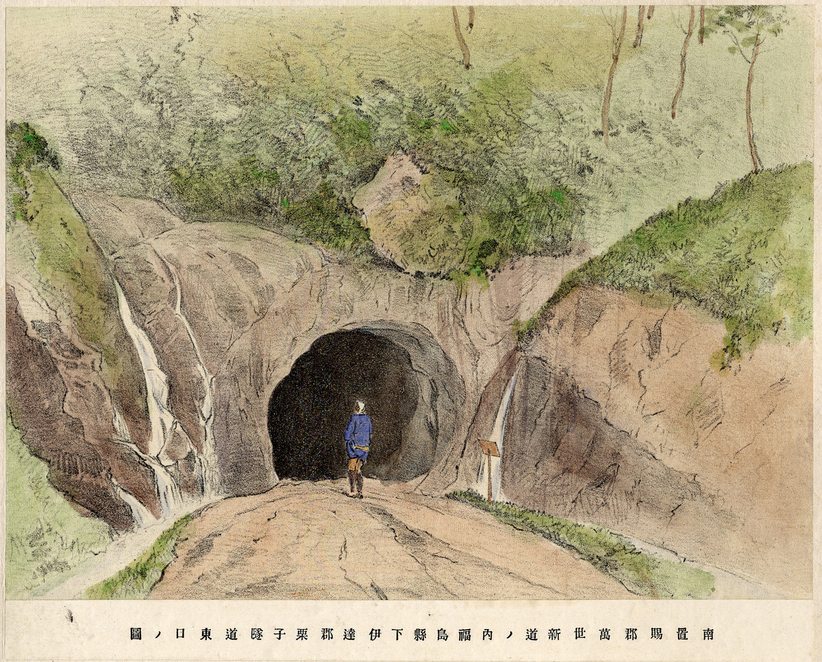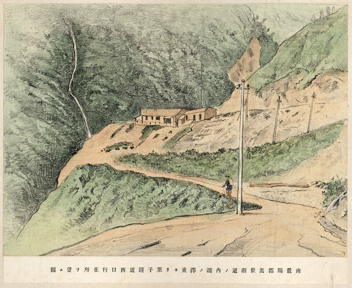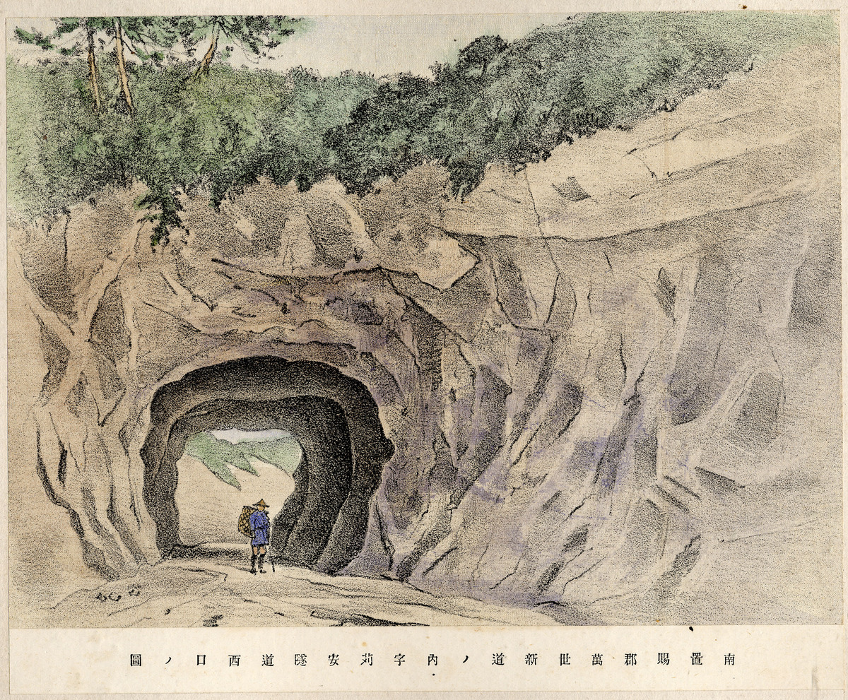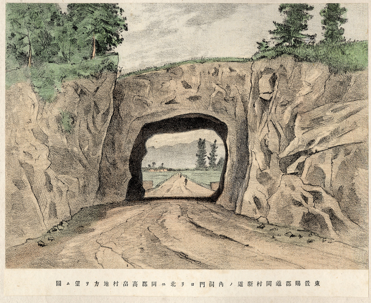 〔絵画〕三島県令道路改修記念画帖 其之三 南置賜郡万世新道ノ内字苅安隧道西口ノ図