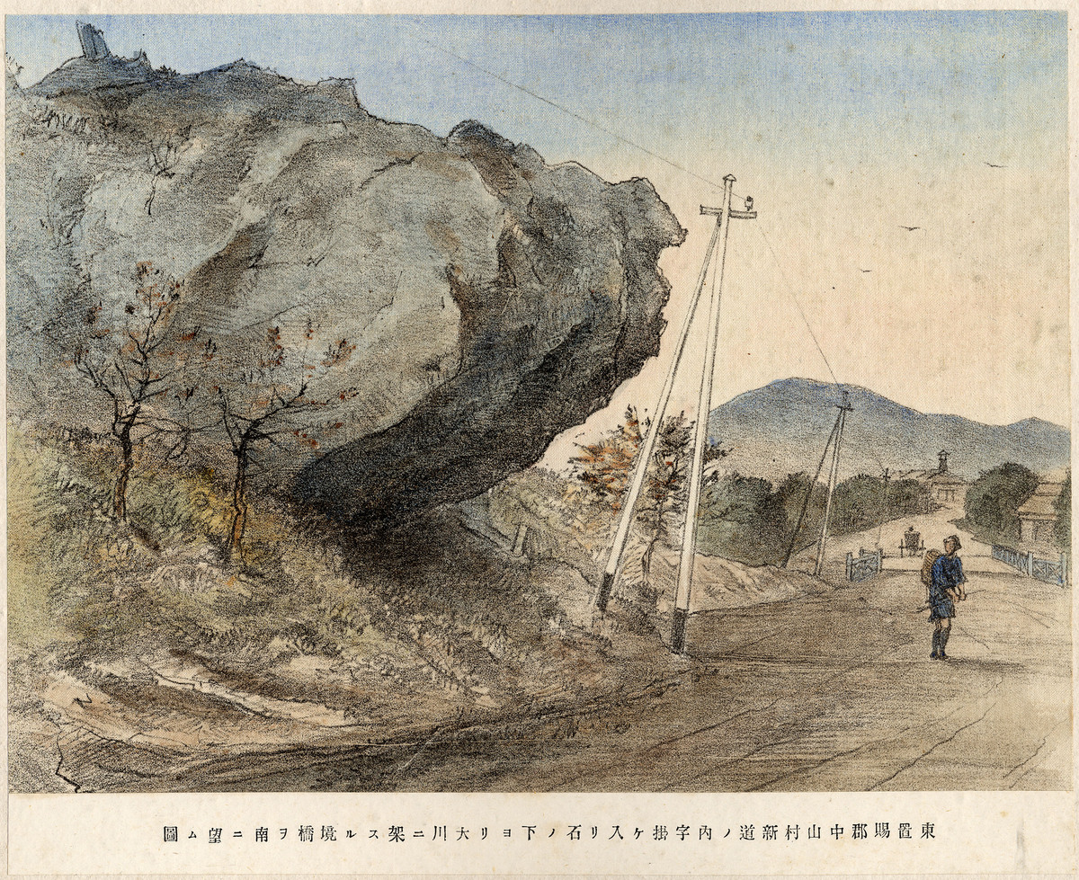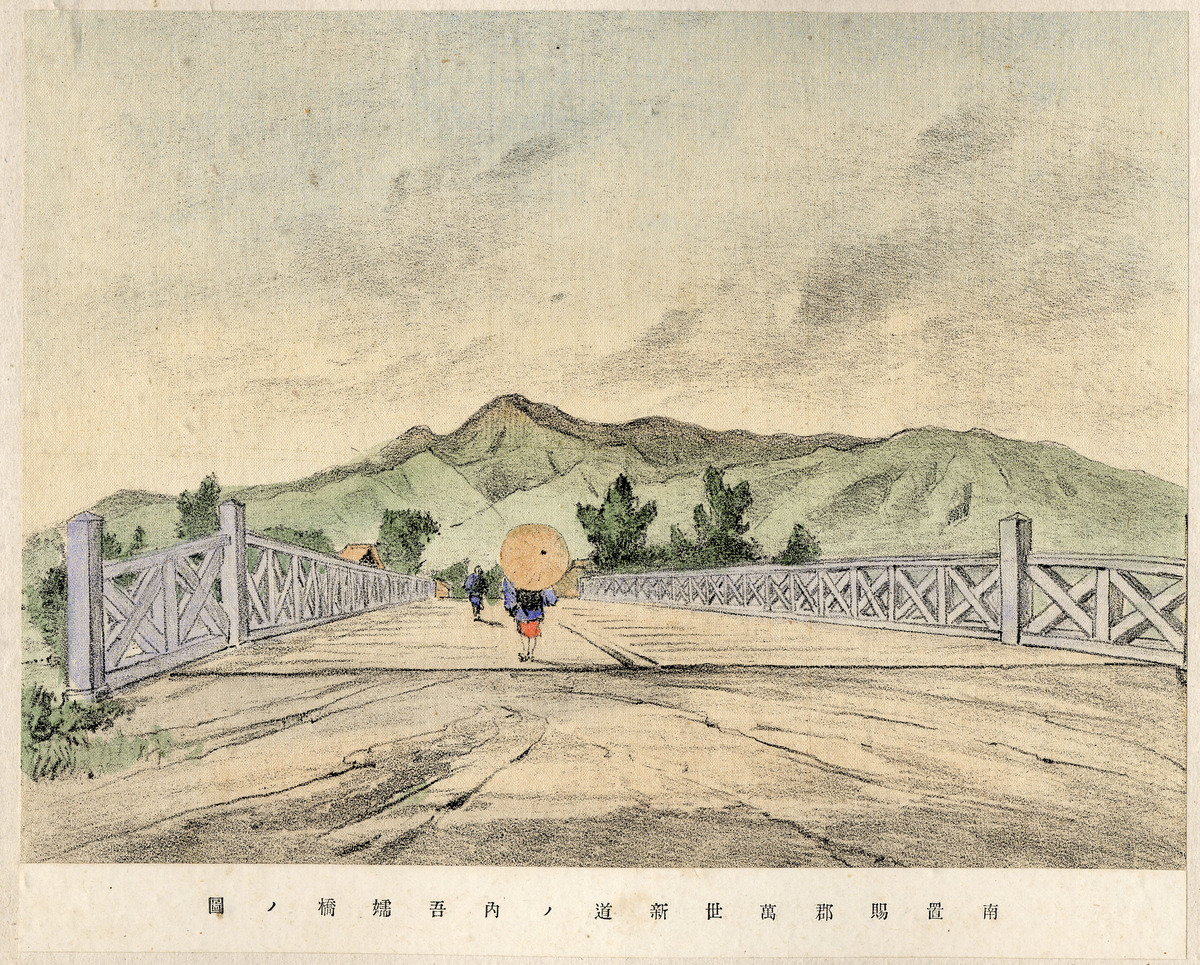〔絵画〕三島県令道路改修記念画帖 其之三 南置賜郡万世新道ノ内吾嬬橋ノ図