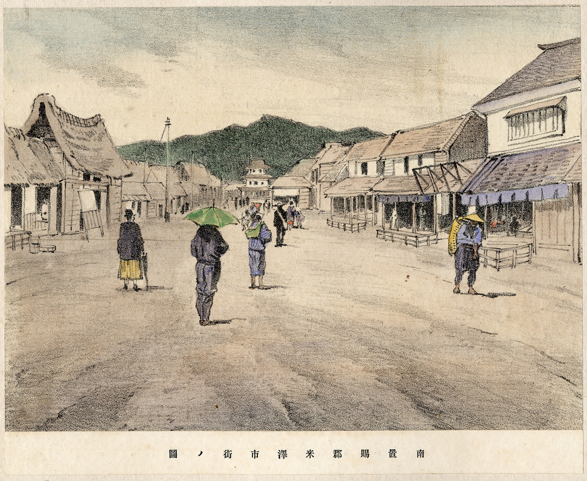 〔絵画〕三島県令道路改修記念画帖 其之三 南置賜郡米沢市街ノ図